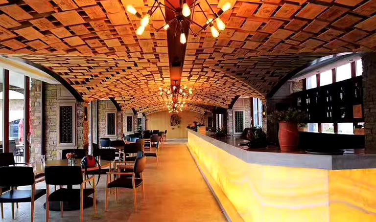 莊園由美國著名設(shè)計師鄭克耐設(shè)計,目前擁有意式風情的婚宴大廳(可容納300多人)、藝術(shù)長廊吧,巴伐利亞風格德國房、中國宮廷風格的中國房,哥特式風情教堂、專業(yè)的品酒室、酒酵室等。