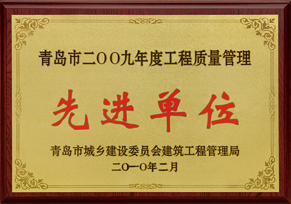 2009工程質量管理先進單位