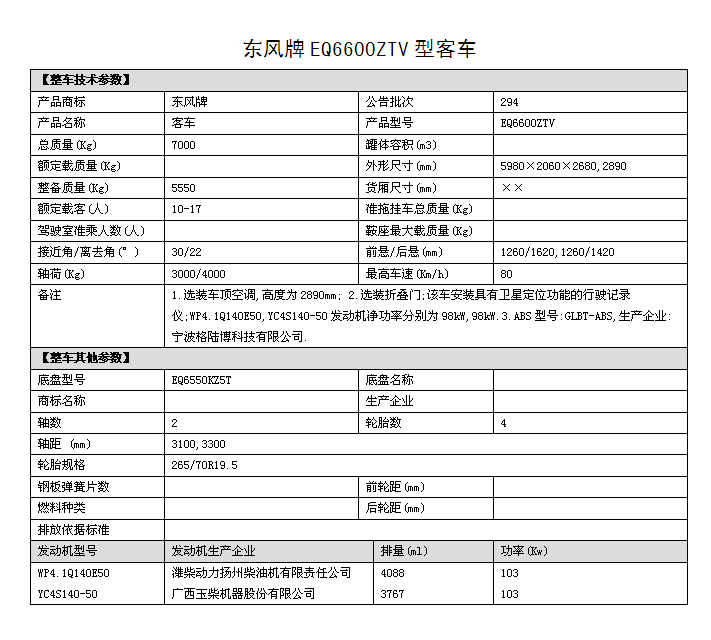 EQ6600ZTV四驅(qū)越野客車圖片,國(guó)五排放四驅(qū)10座越野客車價(jià)格,6米四驅(qū)客車多少錢,東風(fēng)四驅(qū)越野客車參數(shù)配置: 1.底盤型號(hào)EQ6550KZ5T,發(fā)動(dòng)機(jī)型號(hào):YC4S140 50 國(guó)五排放 2.整車外形尺寸長(zhǎng)寬高:(5980×2060×2890)mm 驅(qū)動(dòng)形式:4×4 東風(fēng)分時(shí)四驅(qū) 3.離合助力,方向助力,斷氣剎,鼓式自動(dòng),駕駛區(qū)域空調(diào) 4.車橋?yàn)闁|風(fēng)德納,輪胎為265/70R19.5型越野輪胎,ABS 5.工具箱,前置防裝杠,粘接式推拉玻璃,發(fā)動(dòng)機(jī)底板防護(hù) 6.鋁花紋地板,中檔皮革座椅10個(gè)+1個(gè)折疊座椅,整車座椅安全帶,手動(dòng)式外擺門,正副司機(jī)門,后置雙開門,東風(fēng)原廠派恩頂置空調(diào) , 7.窗簾,滅火器兩個(gè),備胎一個(gè),獨(dú)立燃油暖風(fēng)系統(tǒng)帶兩個(gè)雙面王出風(fēng)口 8.其它為EQ6600ZTV型四驅(qū)越野客車標(biāo)配。具體配置參數(shù)參照(附件一)。 成品合格證、全額上戶發(fā)票、隨車工具、隨車文件各一套。