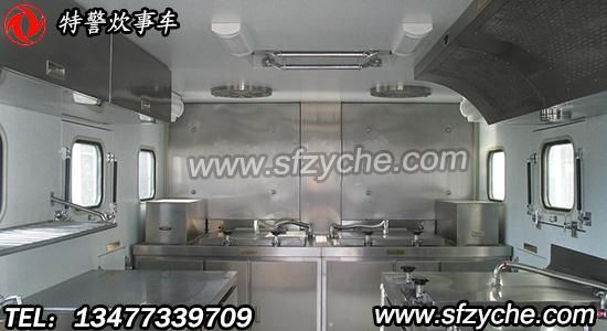該車采用軍用統(tǒng)型二類底盤,車廂為隔熱保溫大板粘接式輕型結(jié)構(gòu),多種供電方式為車內(nèi)各用電設(shè)備提供電源。車內(nèi)配有高效的封閉式燃油節(jié)能爐灶、配套設(shè)備、各種廚具、等。本車具有操作方便、使用可靠、熱效率高,保溫效果好等特點(diǎn),適應(yīng)全天候展收作業(yè),是先進(jìn)的后勤裝備。