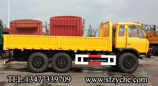 2、詳細配置:平頭一排半駕駛室,6*6驅(qū)動,康明斯190馬力,韶齒6檔變速箱,斷氣彈簧制動,貫通式中后驅(qū)動橋,12.5R20越野胎,軸距 3500+1250mm,加厚雙層大梁,貨箱4850mm,帶軍用保險杠。(新款仿天錦駕駛室加價1.5萬元)東風越野卡車:www.ingloriousdogs.com