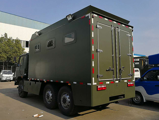 相關(guān)車型東風國五六驅(qū)越野自行式炊事車_東風軍用六驅(qū)炊事車_六驅(qū)野戰(zhàn)自行式餐廚車為部隊提供一種機動、高效的專用現(xiàn)場飲食保障裝備,滿足部隊平時及野外值勤時的主副食的飲食保障工作,并解決部隊行進中不停車做飯菜的需要及供應飲用水的需求。六驅(qū)自行炊事車功能簡介:該裝備主要編配于部隊,為部隊官兵野外作業(yè)時提供良好的飲食保障:具有制作食品、保溫食品和儲存食品的空間與功能、并具有提供開水和餐具消毒的功能。