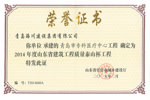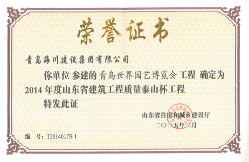 近日,公司從山東省住房和城鄉(xiāng)建設(shè)廳捧回五項泰山杯獎證書,其中2014年度山東省建筑工程質(zhì)量泰山杯工程證書三項;2014年度山東省建筑裝飾裝修工程質(zhì)量“泰山杯”工程證書兩項。