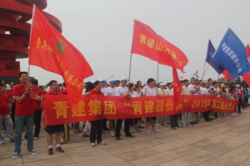 青建集團(tuán) “青建股份杯” 2015年職工健身跑(健步行)活動6月27日(周六)上午9:00在五四廣場“五月的風(fēng)”雕塑下舉行開幕式,共有來自青建系統(tǒng)各單位的500余名員工踴躍參加了本次活動,青建集團(tuán)執(zhí)行總裁朱廣君致辭并為方隊(duì)鳴哨開跑。