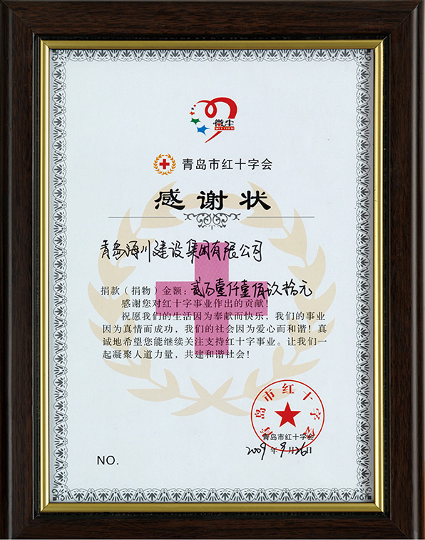 紅十字會感謝狀