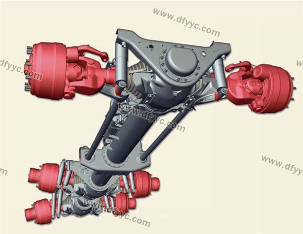 斷開式車橋是太脫拉另一與眾不同之處,這幫助太脫拉這樣的重型卡車實現(xiàn)了全輪獨立懸架,允許車輪有較大的跳動空間,大大提高了整車在極端路況下的通過能力,尤其是通過臺階、壕溝、扭曲路的能力。太脫拉在空載的時候車輪是呈內(nèi)八字的大外傾角姿態(tài),行駛的時候只有輪胎的外側(cè)胎肩接觸地面,而滿載的時候卻是呈負(fù)外傾的姿態(tài),這因為其斷開式車橋?qū)嶋H上是單橫擺臂的結(jié)構(gòu)所造成的,只要使用特制的輪胎,其輪胎磨損情況可以有效的改善。